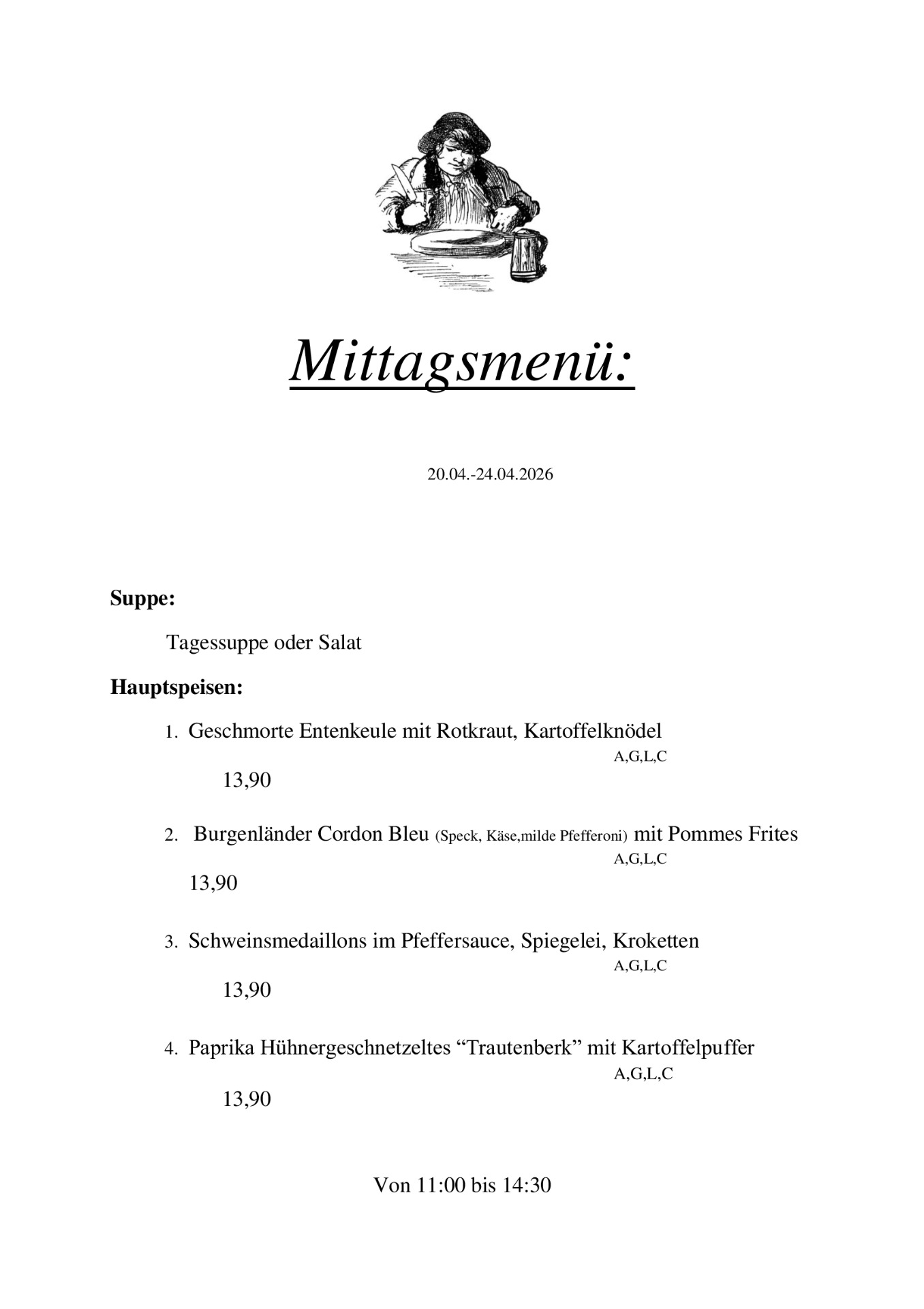Speisekarte und Menü